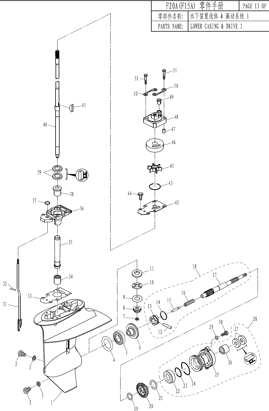 F20A Lower Casing and Drive 1 – Waterpump